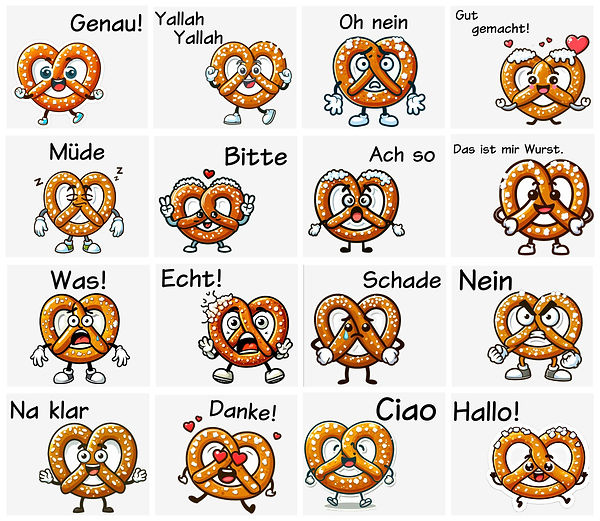 In the first version of the collection, I created 16 pretzel character stickers using the AI image generator, Chat GPT-4 and DALL.E. Each sticker was paired with a German daily expression, adding a linguistic element to the visual charm.